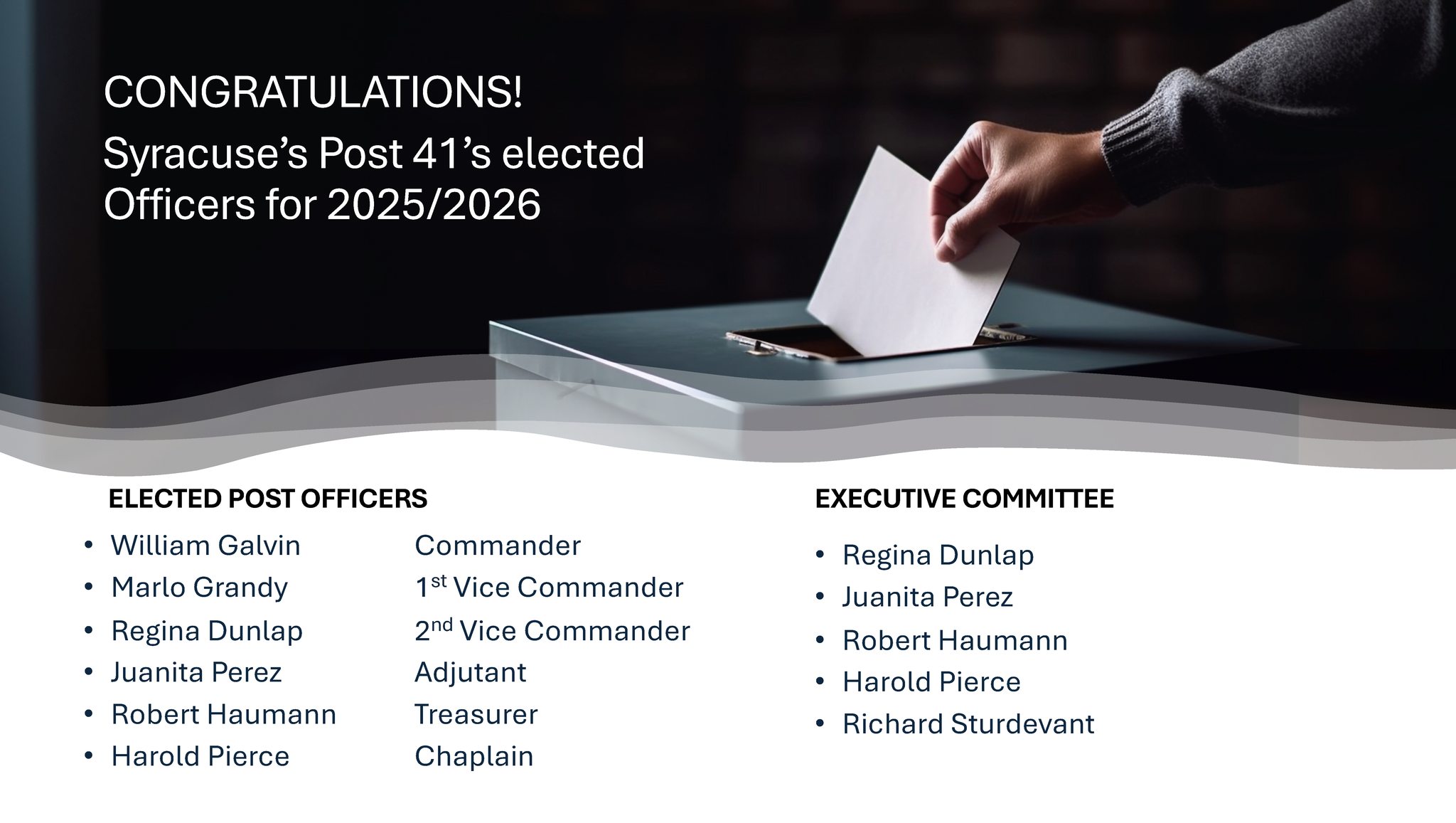 Syracuse, NY – On the road to revitalization. The May 31st, 2026, Elections for Syracuse Post 41.