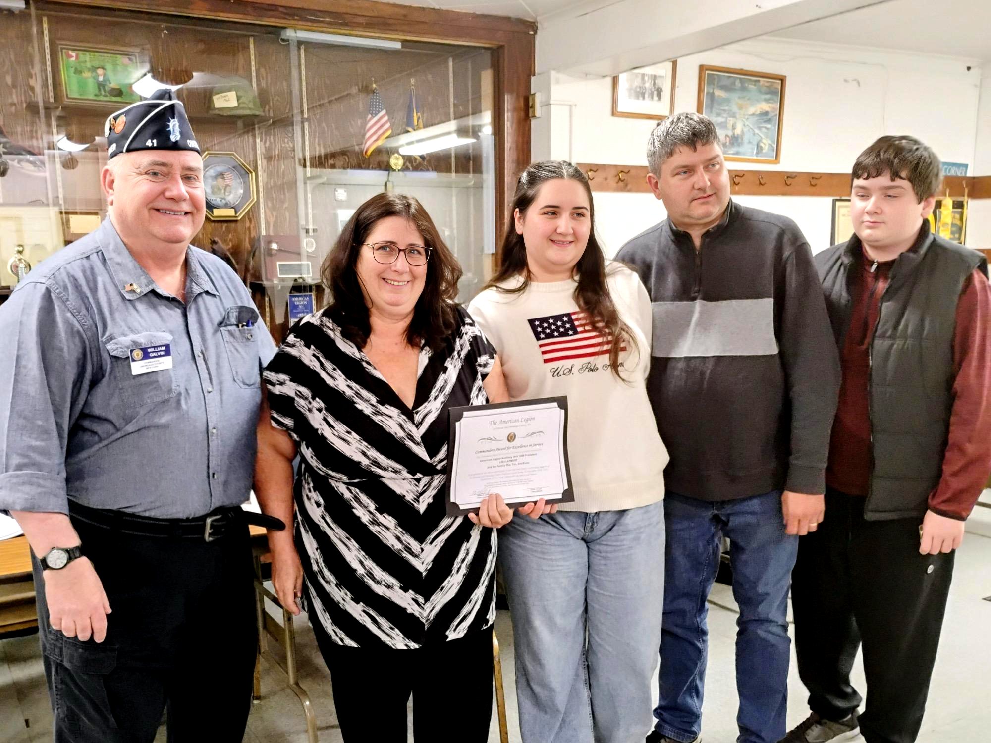 November 24th, 2026 – Syracuse, NY CONGRATULATIONS to Auxiliary Unit 1468 President Lisa Lambert and her family, Mia, Evan, and Tim for receiving the Onondaga County American Legion’s Commander’s Award
